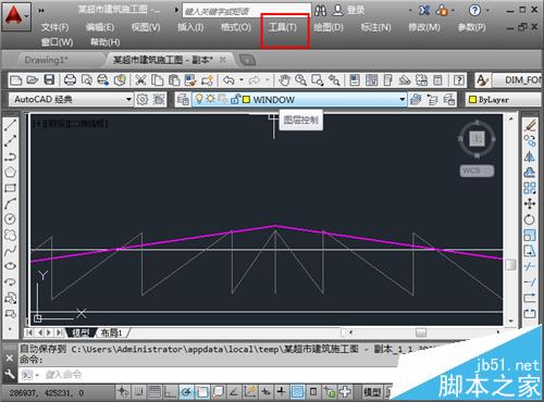 2、在菜单栏,找到并点击“工具”按钮,进入到工具选项中。