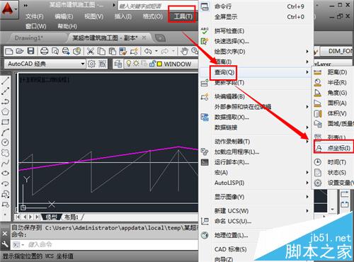 在CAD工程制图中,有时候需要查询某一个点的坐标,明确其位置,但是一时不知道如何查询,其实这个查询点的坐标和查询CAD图纸面积的方式是一样的,异曲同工,见下面。