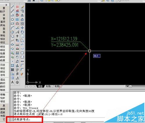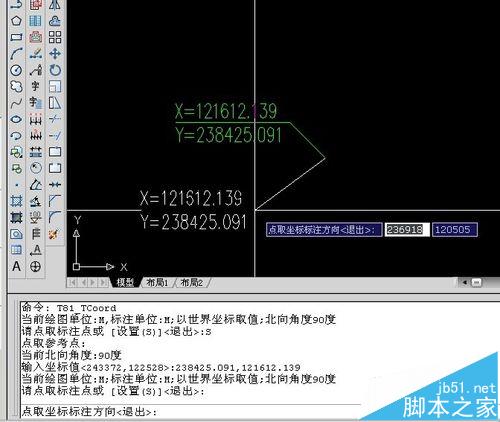 4、输入这个点正确的坐标值, 先输Y,再输X,回车