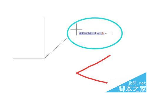 1、上面相对坐标是知道长和高,那极坐标就是知道角度和要画的长度,也是可以画出来的。同理,在这个直角点画出斜长15,角度30°的。