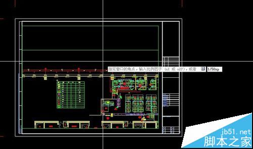 3、输入MV命令,拉出一个窗口。这个窗口是可以点击夹点改变大小的。选择个合适大小放在图框里。在窗口中双击进入里面,输入Z,确定,输入1/30xp,确定.这样你的图纸比例就变为1:30,如果想变成1:50,只需输入Z,确定,输入1/50xp,确定。图纸比例的控制就是通过1/nXP的n这个值控制的。