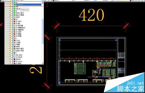 2、把图框复制到布局来,把图框大小变成A3的尺寸,具体操作为:量一下图框的长度为x,选择图框,输入sc(缩放命令),选择基点,比例因子输入420/x。这样图框就变为A3纸张的尺寸了