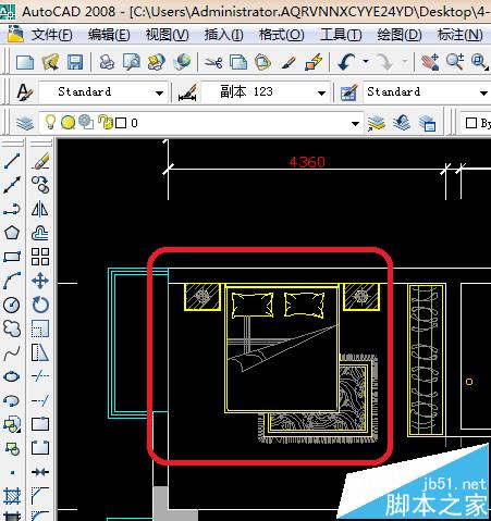 cad怎么画房间平面图,房间要摆哪些物体来表现出来,一张床要放多大才合适,衣柜要放在哪个位置。如下图所显示。
