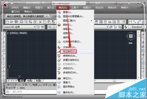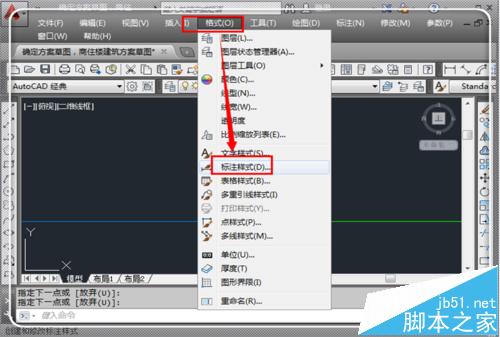 4、在菜单栏位置,点击“格式”,然后再点击“标注样式”,进入标注样式修改栏目。