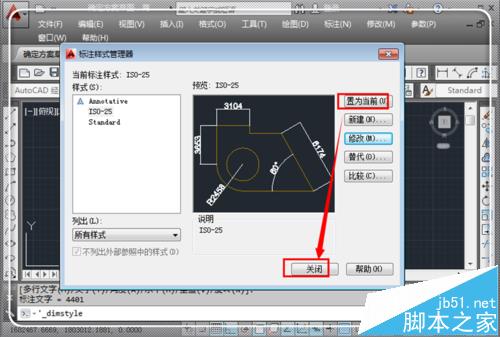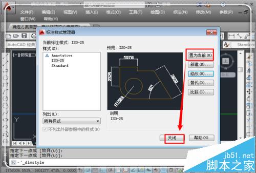 7、返回到“标注样式管理器”,点击“置为当前”,然后点击“关闭”。