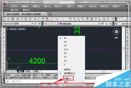 这个方式适合于部分标注尺寸都与绘图尺寸不一致的情况。还有一种可能也是捕捉方式的问题。右键点击绘图界面下方的快捷方式。弹出设置界面,点击“设置”。