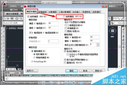 问题一:如果你开启了捕捉和栅格,建议将其关掉,因为捕捉可能会捕捉到栅格上的点,这里只需要去掉“启用栅格”前面的勾即可。