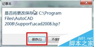 4、选中acad2008.lsp,右键选择打开,将(command "-scalelistedit" "reset" "y" "e") 复制到最后;
