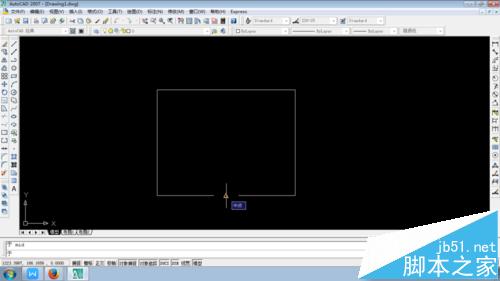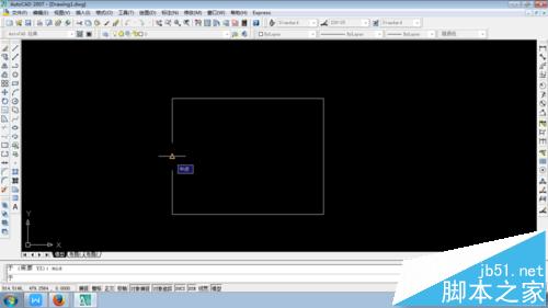 2、如上图,在命令行出现了一个“于”的字符后,在命令行输入中点捕捉命令快捷键mid,将十字光标移动到矩形其中一条边的中点附近,当系统提示中点后单击,如图