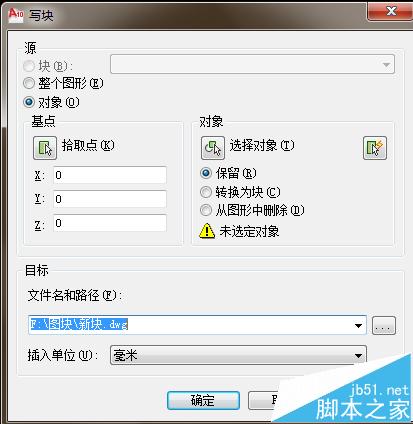 3、绘制自己工作需要的常见电气元件,利用写块指令(快捷键W),选择拾取点或者对象,将所需要制成块的电气元件选定,在文件名和保存路径里修改你所需要保存的文件名和地址
