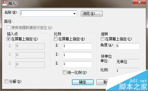 4、保存好之后,需要绘制图形时,点击插入里的块命令,将所保存的块导入图中