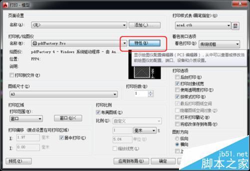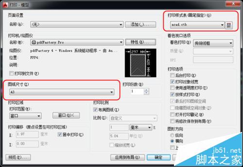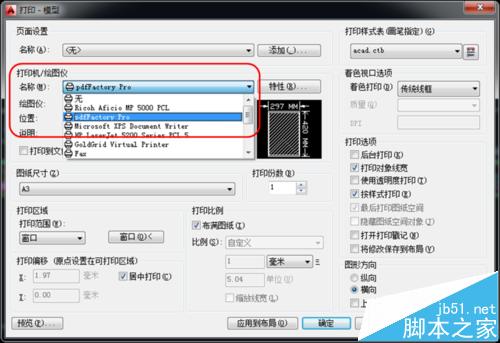1、启动AutoCAD的打印页面,在打印机下拉列表中选择“pdfFactory Pro”。