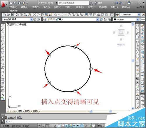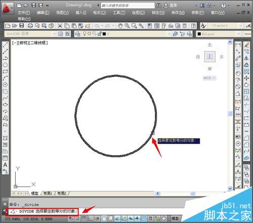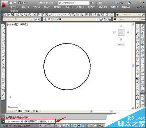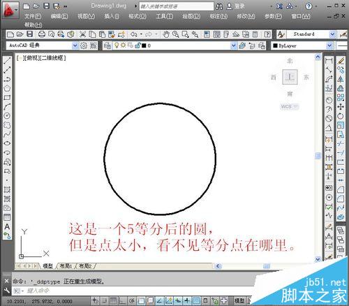 用这个方法,可以等分圆,直线,或者其它任意的曲线。可以按数量等分,也可以按距离等分。但是,等分后插入的点太小了,看不见,不知点在哪里,怎么办?可以设置点的样式来解决。下面举例说明。
