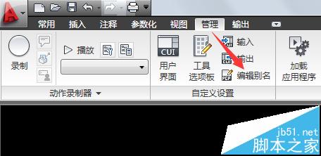 快捷命令可以简化命令名的输入,在acad.pgp文件中编辑。在功能区菜单的【管理】下选择【编辑别名】,可以打开记事本格式的acad.pgp文件,编辑完后存盘即可。
