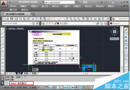 3、进行缩放,在命令栏出现缩放“scale”命令,要求指定对象,点击需要缩放的对象。