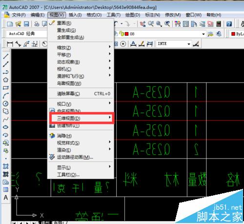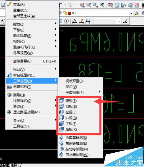 4、我们在三维视图里看到有“俯视”,选择即可。也就是说,这张被反过来的图纸可能是仰视看到的,那么改变一下视角就能将图纸反过来了。