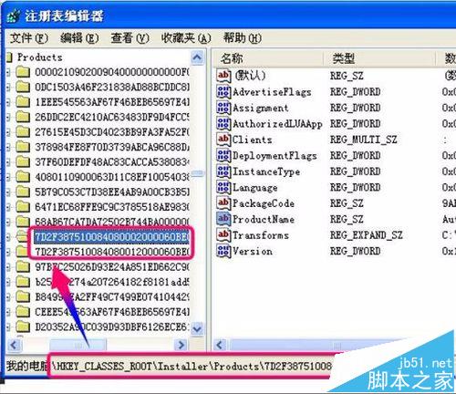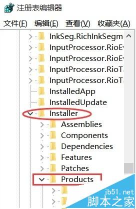 2、打开注册表编辑器后,定位到以下键值ROOT\installer\Products\