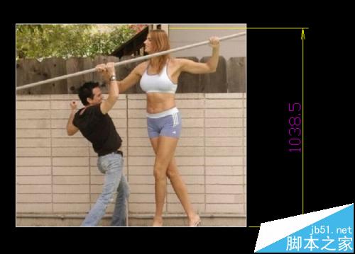 2、量出照片中女的身高,我们看到女的站得还是比较直的,所以目测两个点来量取即可。我的量得尺寸为1038.5,如下图。