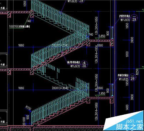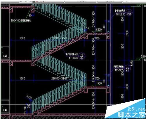 1、先将你需要处理的图纸打开,保证图层全显,且不要冻结或锁定。如图,图中的楼梯栏杆颜色是一样的,但是图层不是一样的,按图层选取或者隐藏的话只能选中其中一部分