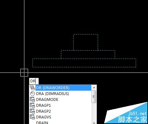 3、接上面的步骤,输入DR,将这个对象置于最前。再右键框选整个图形,结块。