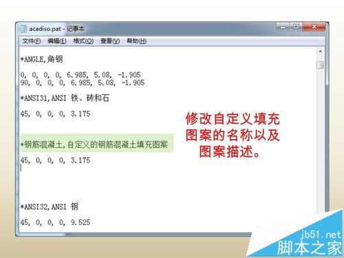 注意事项:“acadiso.pat”与“acad.pat”分别对应公制和英制,应根据绘图环境选择修改(如果不确定可对两者都进行修改)。