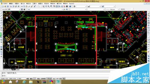 2、用鼠标选择需要截图的区域:按鼠标左键不放,在CAD图纸上选取需要截图的区域,放开鼠标左键,再点击一次鼠标左键对所选截图区域进行确认。如图红框区域为待截图区域。