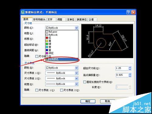 1、直线,打开,修改尺寸线颜色为147号色,尺寸界线颜色为147号色,超出尺寸线60,起点偏移量为60.