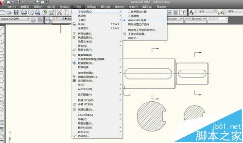 1、打开CAD及要修改的文件,先确保是在CAD经典模式,点击上方工具栏:工具-工作空间-AUTO CAD 经典