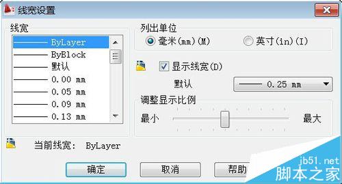 4、在弹出的“线宽设置”对话框中勾选“显示线宽”。