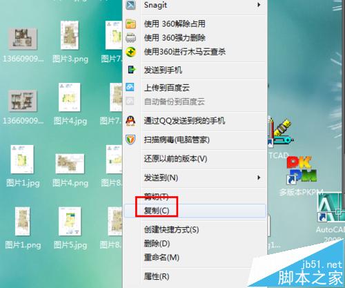 1、这种方式大家比较熟悉,但是绝对不推荐,不信你可以试试,看看是不是要出问题。但还是介绍一下,这个方式比较适合刚开始使用CAD时使用,因为操作时,会有一些不是很方便的东西,但是操作很快,也符合人们的电脑操作习惯。这里以CAD2012为例,其他版本的操作一样。打开cad;选择想插入的图片,进行复制。