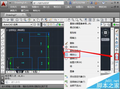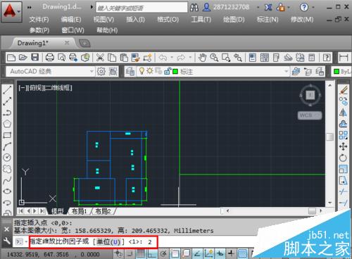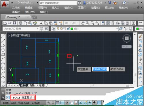 8、输入缩放比例,然后回车,返回到绘图界面。