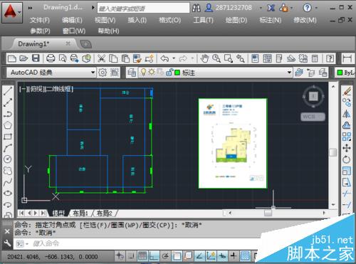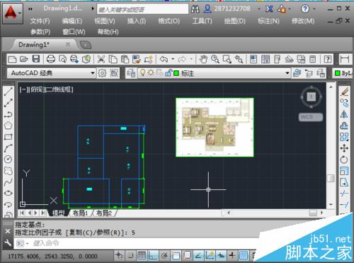 5、返回到绘图界面,指定插入点插入图片,由于插入的图显示的太小,可以将它放大。
