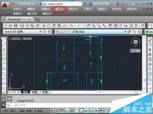 1、这个方式看似复杂一些,但是比较规范,从坐起来也很快捷,打开cad,点击“插入”。