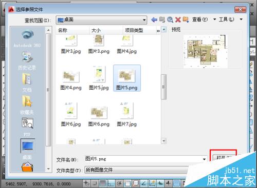 3、弹出选择参照文件选项卡,找到需要插入的图像,点击“打开”。