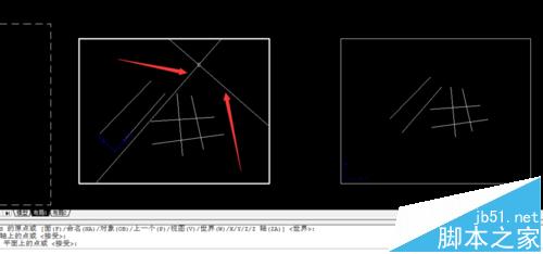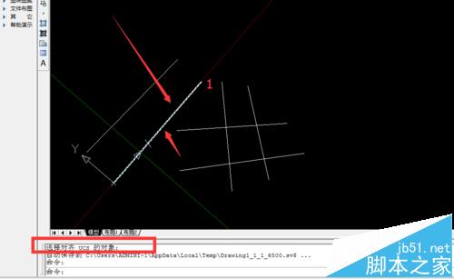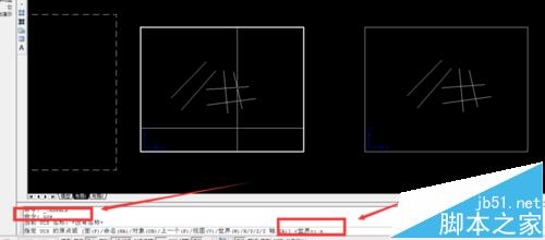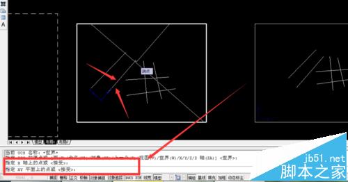 2、我们现在布局一中,用ucs——w——空格键——空格键——沿着需要变换的方向拉一条线(比如图中的1这条线段)——空格