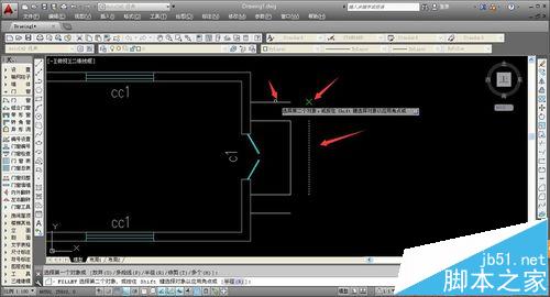 9、进行线条的延长和交接,我们可以使用“圆角”命令,输入命令键“F”,按下空格键,即可确定圆角命令。