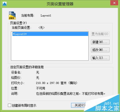 3、在Layout1上右键,选择“页面设置管理器”可以调图纸大小(A3、A4什么的);