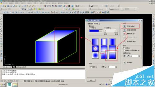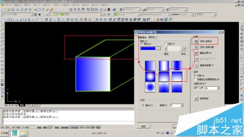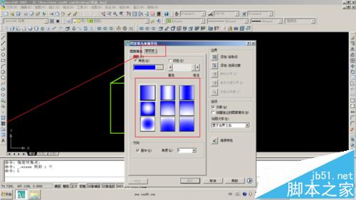 点击如图按钮或输入H命令,选择暂变色选项卡。注意观察合适的渐变方式。