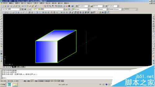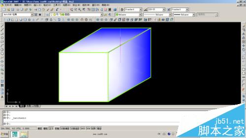 如图所示的实体,是用正等轴测加上渐变填充共同做用的结果。这个实体是平面的,犹如画画一般,而非实体。下面我以此图为例,来说明渐变填充如何使用?
