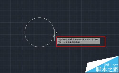 3、再在CAD中画一个圆形,点击右上角粘贴——粘贴为超链接,移动鼠标点击圆选中。