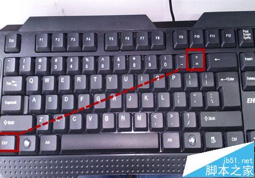 3、在键盘上,找到“ctrl”键和“+=”键。按住这两个键的组合即“ctrl+”。