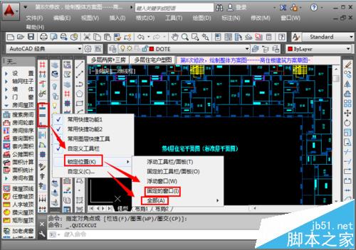 方法为:在这些天正工具栏处,点击鼠标右键——弹出功能选项,选择“锁定位置”——根据需要固定工具,如果自己不是经常拖动工具栏围观、变位置,可以点击“全部”将其固定起来,这样就不会丢失了。
