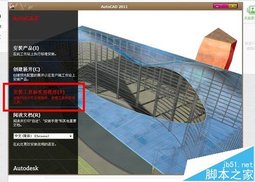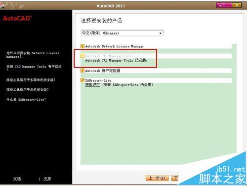 4、完成了软件内部设置后,关闭CAD,进行下一项设置。找到CAD源文件安装包,双击安装。点“安装工具和实用程序”--只勾选第二项“Autodesk CAD Manager Tools”进行安装。☆☆☆这里因为我已经安装了,所以是灰色的☆☆☆