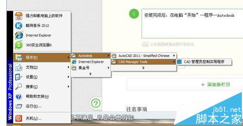 5、安装完成后,在电脑“开始”--程序--Autodesk-中打开此程序“CAD管理员控制程序”