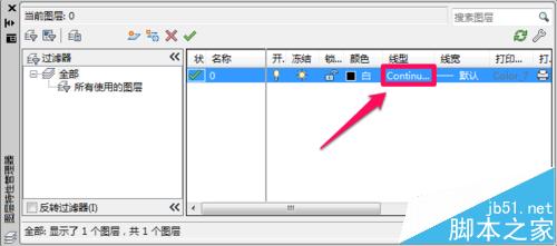 2、在图层特性管理器中点击线型进行设置。