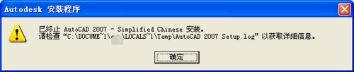 在安装CAD2007的时候,如果系统安装的绘图软件过多,可能在安装CAD的时候会提示“已终止autocad 2007-simplified chinese安装”。