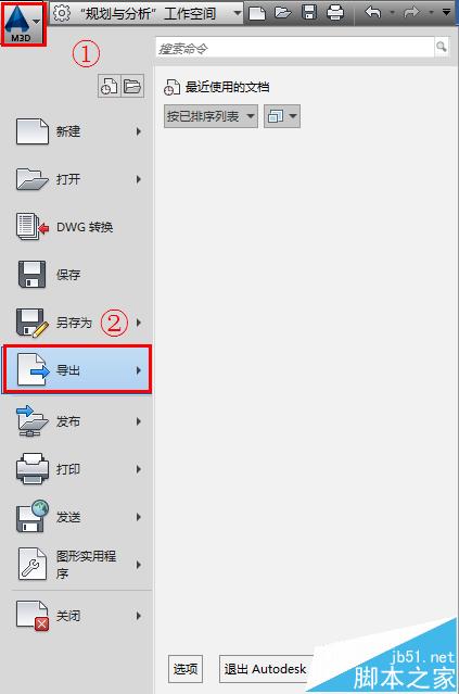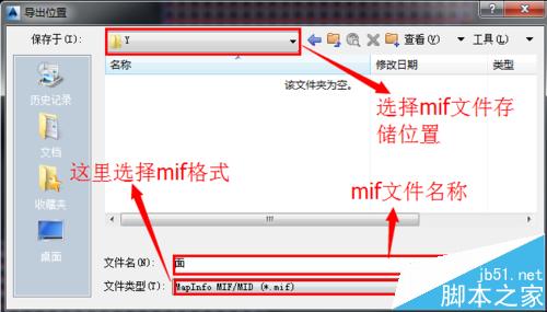 点击左上角的软件图标 ,弹出一个下拉菜单,在下拉菜单中选择“导出”→“其他GIS格式”,弹出“导出位置”对话框,选择好导出的mif文件存放的文件夹和mif文件名称,这里先导出多段线围成的面,所以名称命名为“面”。