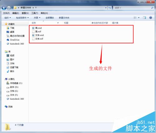 打开输出mif文件的文件夹,我们可以看到里面有四个文件,分别是“面.mif”、 “面.mid”、“文字.mif”和“文字.mid”,这里的*.mif是主体文件,*.mid是属性文件。现在我们将“面.mid”和“文字.mif”文件删除,将“文字.mid”文件重命名为“面.mid”。