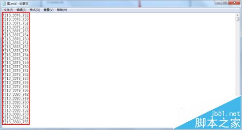 以记事本的方式打开刚刚修改后的“面.mid”文件,可以看到里面是编号,新建一个excel文件,将所有的编号剪切到新建的excel内,Ctrl+F,利用查找和替换功能对编号进行修改。修改规则:将“FJ13_33”替换为1;将FJ13_34替换为2;将“_”替换为空白(即去掉),将替换修改后的编号复制到“面.mid”文件内并保存,替换后的“面.mid”如图,这样就完成了对编号的修改。