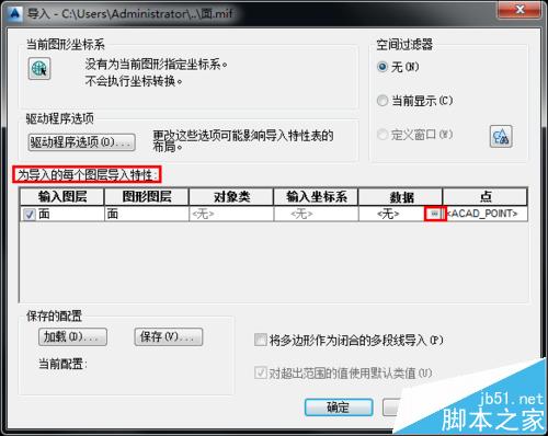 在AutoCAD Map 3D 2014中新增加一个空白图层,在菜单栏点击“插入”,再点击“地图导出”弹出“导入位置”对话框,点击选择要导入的mif文件,单击“确定”弹出导入设置对话框,在“为导入的每个图层导入特性”一栏找到“数据”一列,点击下面“<无>”旁边的 按钮,弹出“属性数据”对话框,选择“创建对象数据”,在“要使用的对象数据表”一栏选择“面”(如果没有此步骤,导出的shp文件将会没有属性),其余默认,点击“确定”回到导入设置界面,再次点击“确定”,开始导入生成的mif文件。